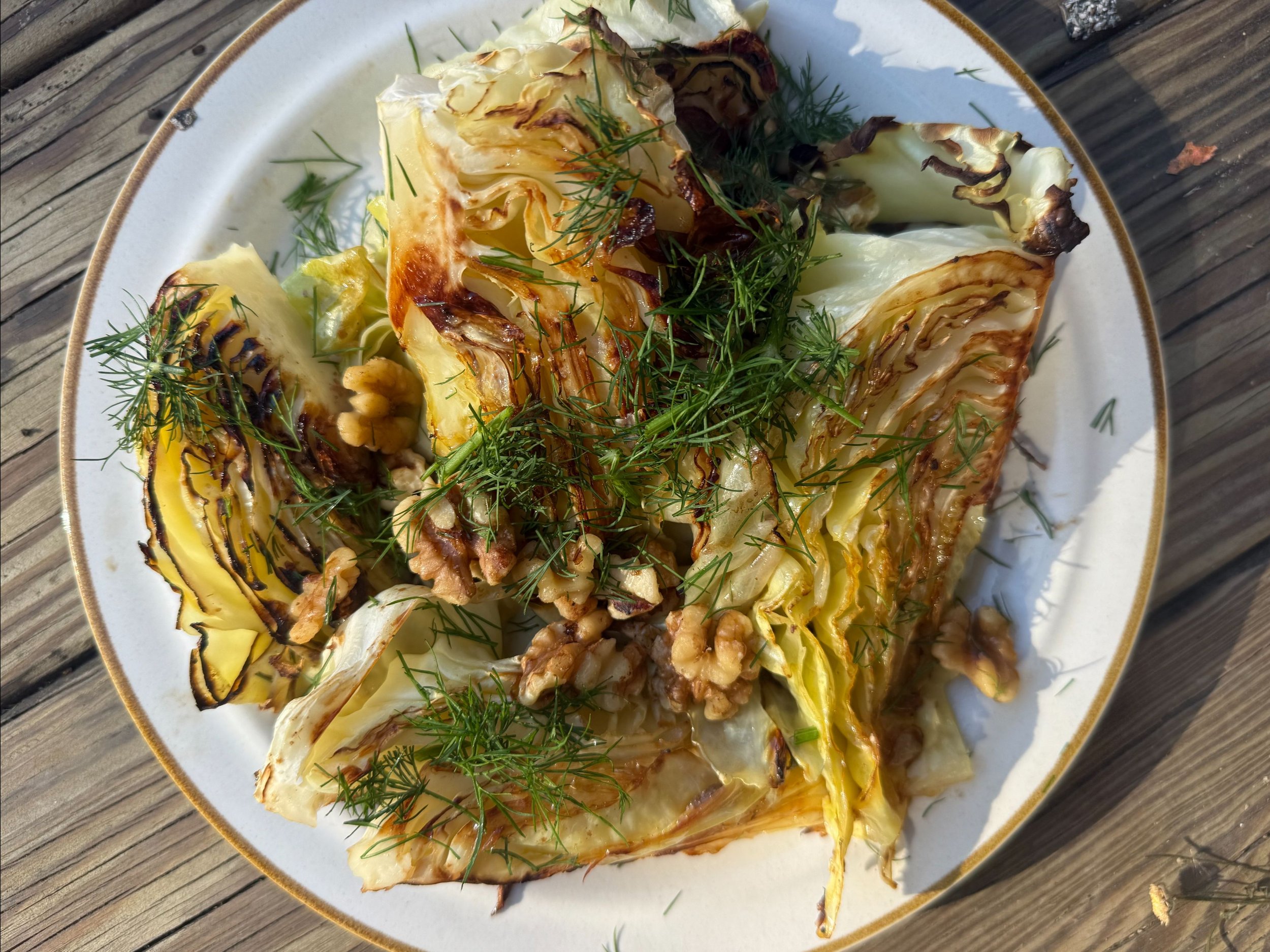 Roasted Cabbage with Anchovies, Walnuts and Dill